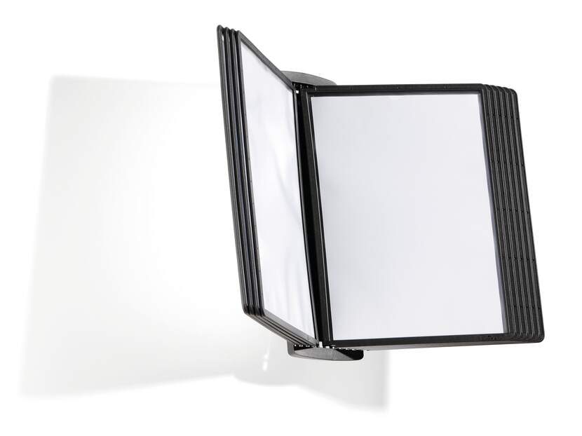 Zestaw paneli na ścianę w formacie A4 do obustronnego wykorzystania do wszelkich informacji: cenników, stron katalogowych, zdjęć itd. (pakowany po 10 szt., w kolorze czarnym).