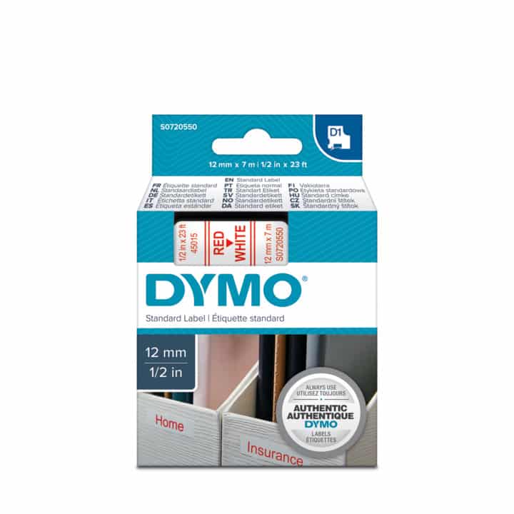 DYMO LM Taśma D1 czerwony nadruk na białym tle 12mm x 7m