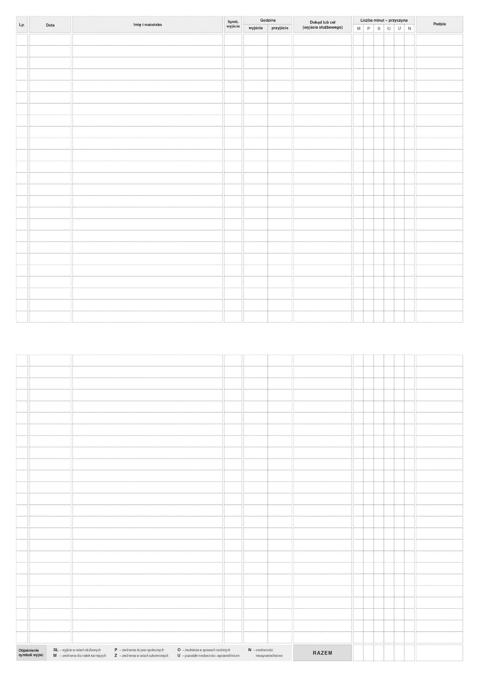 Ewidencja wyjść w godzinach służbowych