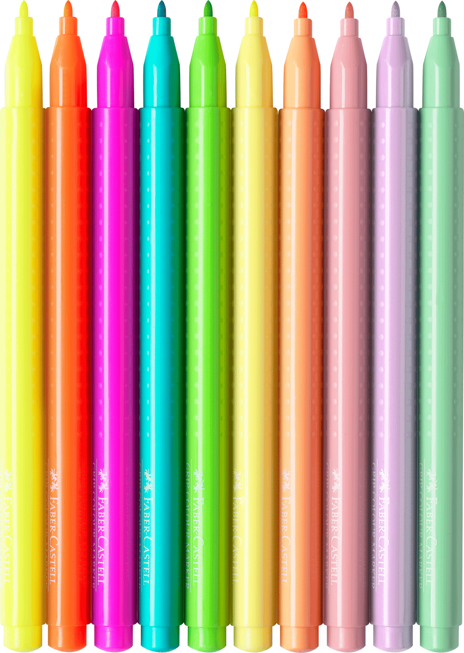 FABER-CASTELL Grip Zestaw flamastrów 10 kolorów pastelowych i neonowych