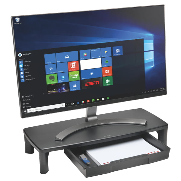 Podstawka pod monitor z szufladą Kensington SmartFit zapewnia ergonomiczne korzyści wynikające z ustawienia ekranu na optymalnej dla oczu wysokości, a także dodatkowe miejsce do przechowywania akcesoriów biurowych. Podstawka wyposażona jest w opatentowany system SmartFit umożliwiający dostosowanie wysokości do indywidualnych potrzeb użytkownika, aby zapewnić mu komfortową pozycję ciała oraz większą efektywność pracy. Szuflada pomaga zachować porządek na biurku, można w niej schować długopisy, zszywacze czy ładowarki. Odpowiednia dla komputerów iMac oraz PC (all-in-one) oraz monitorów zewnętrznych o przekątnej do 30” i wadze do 15 kg.