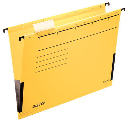 Wysokiej jakości teczka zawieszana w kształcie litery „V”. Posiada boczki po obu stronach teczki, zapobiegające wypadaniu dokumentów.