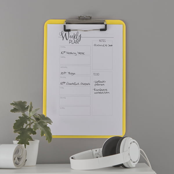 Wysokiej jakości deska z klipsem wykonana z twardego plastiku (polistyrol), w żywych kolorach WOW, wykończona z połyskiem. Idealna do zabezpieczenia dokumentów w trakcie podróży lub w czasie wykładów i prezentacji.