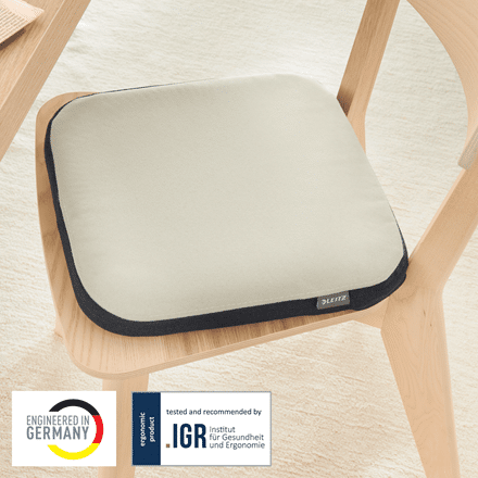 Poduszka do aktywnego siedzenia Leitz Ergo w pokrowcu z tkaniny to idealne akcesorium, które zapewni Ci wygodę i aktywność podczas pracy. Wypełniona powietrzem poduszka pomaga wzmocnić plecy dzięki mikroruchom wykonywanym w celu utrzymania równowagi podczas siedzenia. Zaprojektowana jest do stosowania na każdym krześle. Poduszka do siedzenia, uhonorowana certyfikatem IGR, poprawia krążenie krwi i odciąża kręgosłup, zmniejszając dyskomfort spowodowany długimi okresami siedzenia lub schorzeniami, takimi jak rwa kulszowa. Poduszka skłania do intuicyjnego korygowania postawy w czasie siedzenia, a kwadratowy kształt zapewnia lepszą ergonomię w porównaniu ze standardowymi poduszkami okrągłymi dzięki zwiększonej powierzchni do siedzenia. Ta stylowa, zaprojektowana w minimalistycznym wzornictwie poduszka ortopedyczna do siedzenia może mieć pozytywny wpływ na Twoje samopoczucie – w prosty sposób stworzysz perfekcyjne stanowisko, które pozwoli Ci zachować aktywność w czasie pracy. Połącz poduszkę z innymi produktami Leitz Ergo, aby stworzyć przyjazne i elastyczne miejsce pracy, które pomoże Ci zachować aktywność i produktywność przez cały dzień.