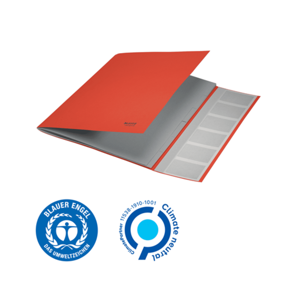 LEITZ Recycle Teczka segregująca z gumką 6 przekładek z kartonu neutralna pod względem emisji CO2 czerwona