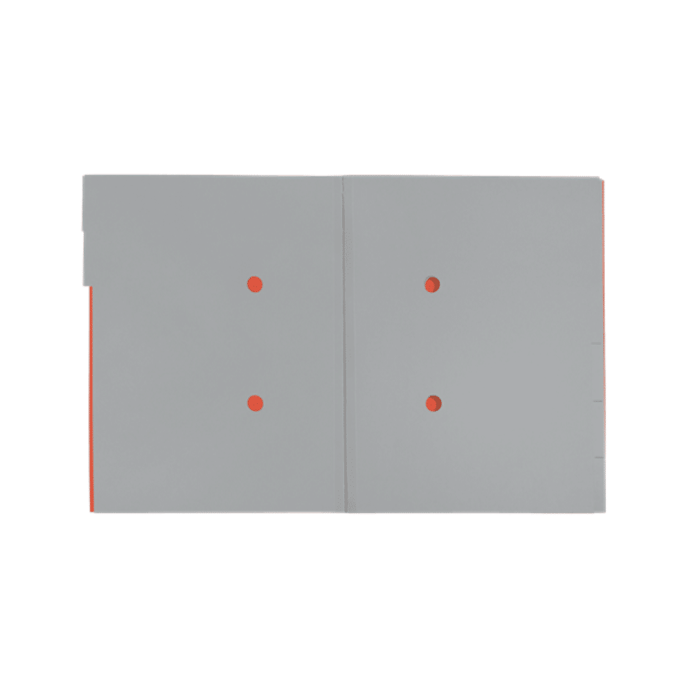 • Wykonana z bardzo mocnego kartonu: okładka 430 g/m², przegródki 275 g/m², zapewniającego trwałość i możliwość wielkokrotnego użytkowania.