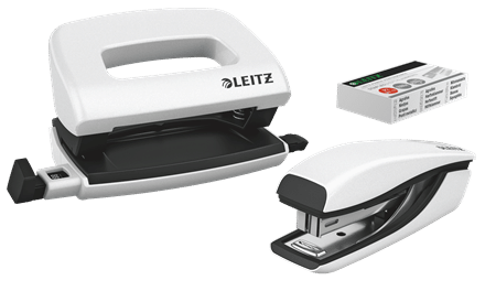 LEITZ Wow NeXXt Zestaw zszywacz i dziurkacz metalowy mini do 10 kartek biały
