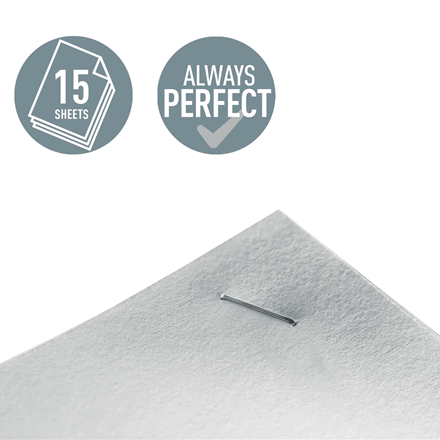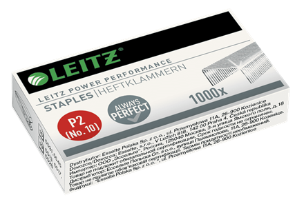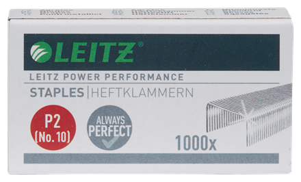 Mocne, stalowe zszywki w rozmiarze Nr 10. Stosowanie zszywek Leitz zapewnia najwyższą niezawodność.