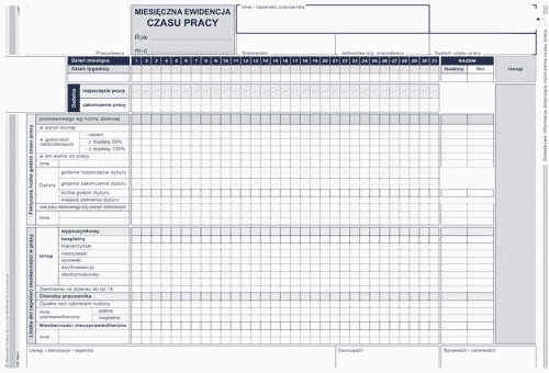 Miesięczna ewidencja czasu pracy