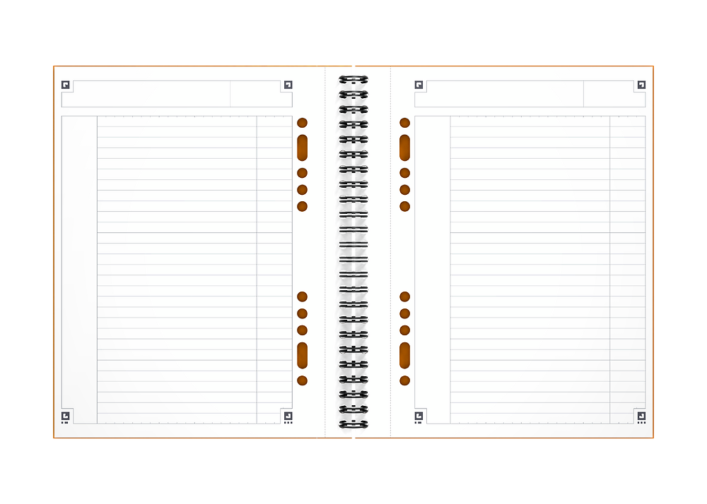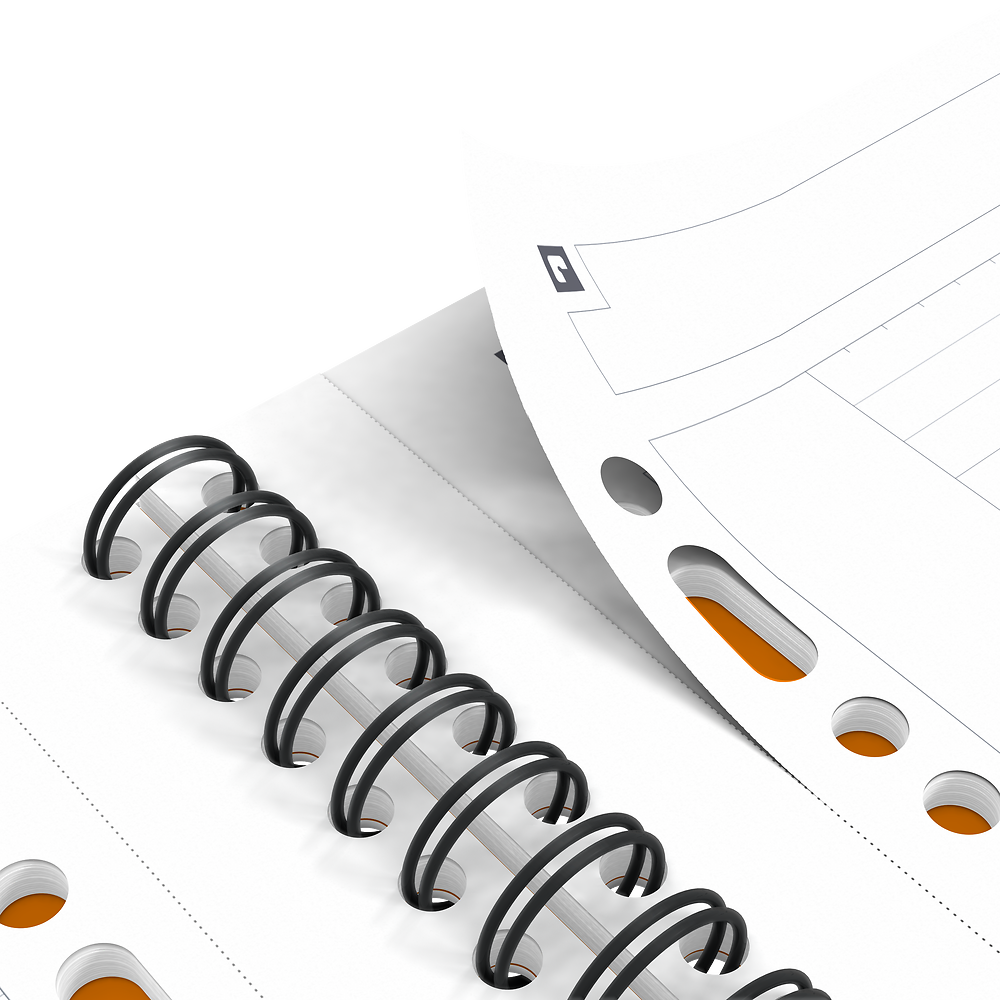 • podwójna spirala pozwala na otwarcie notatnika na 360°, co ułatwia notowanie w samolocie lub pociągu