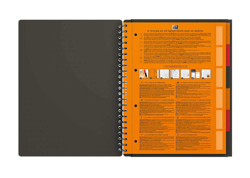 • 6 przekładek na końcu notatnika do szybkiej segregacji luźnych notatek.
