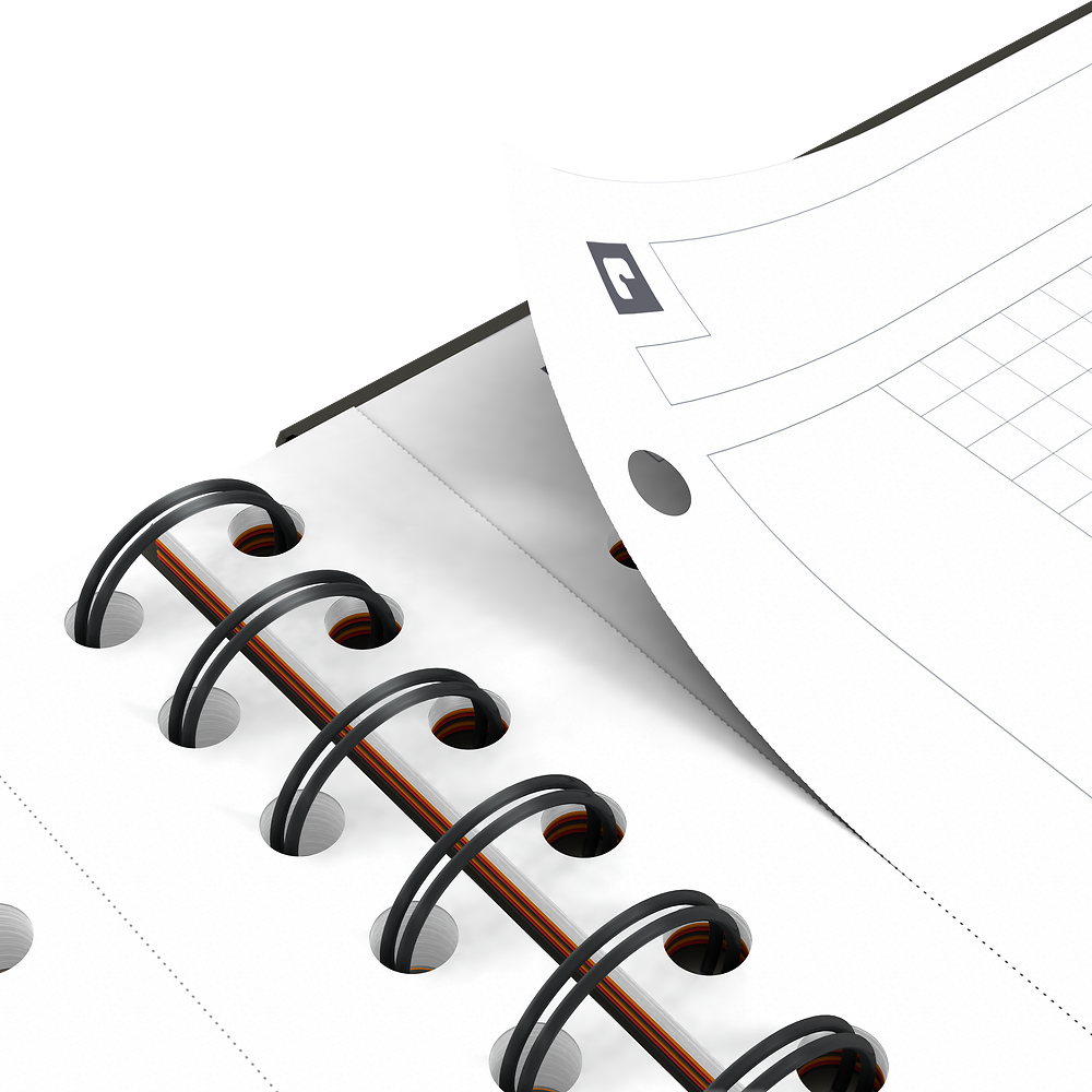 • czarna, podwójna spirala zapewnia, że notatnik leży perfekcyjnie płasko po otwarciu
