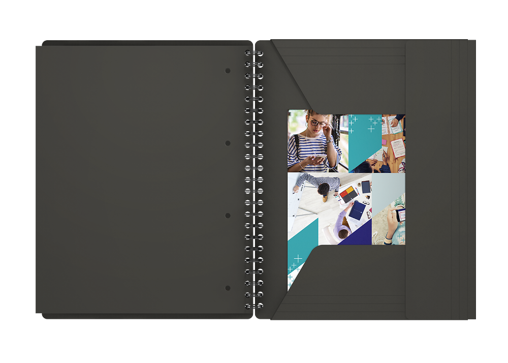 Kołozeszyt doskonale sprawdzi się na biznesowych spotkaniach. Stonowana, szara okładka nadaje mu profesjonalnego wyglądu. Podwójna spirala i szereg udogodnień, takich jak przekładki do organizacji dokumentów czy wewnętrzna teczka zamykana na gumki, sprawiają, że jest niezwykle praktyczny w użytkowaniu.