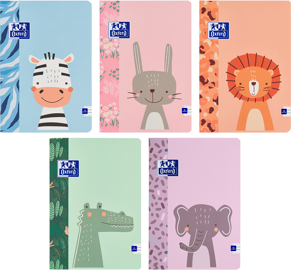 Kolekcja zeszytów Oxford Kids w zupełnie nowej odsłonie – połączenie wesołych zwierzaków i prostych, kolorowych wzorów. Poznaj 5 nowych zwierzaków Kids: zebrę, lwa, słonia, królika i krokodyla. Każdy zwierzak ma swój własny kolor i wzór, który pokrywa całą tylną okładkę zeszytu. Dzięki wysokiej jakości Oxford, zeszyty będą towarzyszyły dziecku przez cały rok szkolny, a uśmiechnięte zwierzaki umilą codzienną naukę.