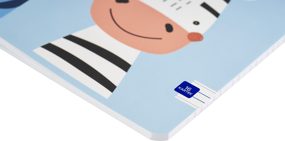 • grzbiet zszywany zszywkami zapewnia trwałość zeszytów i wygodę pisania