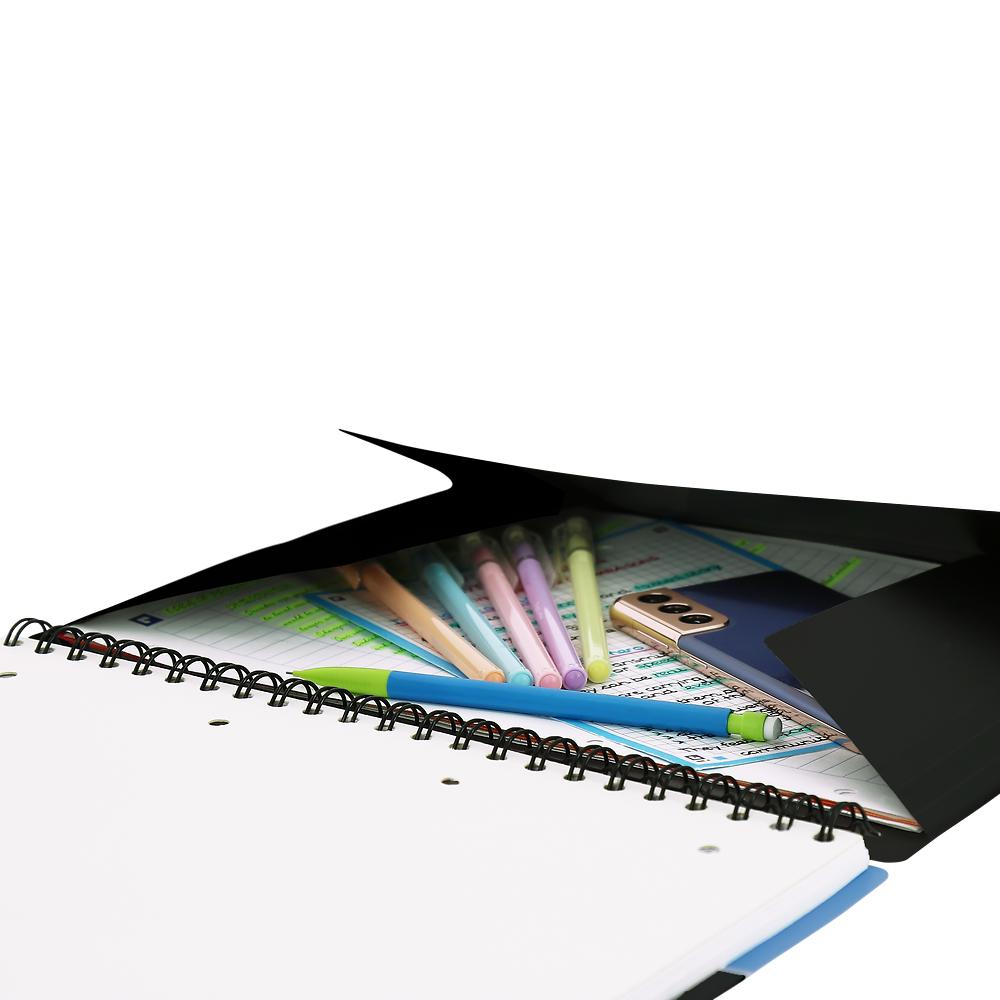 Kołozeszyty Nomadbook to świetna propozycja dla studentów, którzy od notatnika oczekują czegoś więcej niż tylko możliwości notowania. Polipropylenowa okładka zabezpiecza ich wnętrze, a podwójna spirala umożliwia otwarcie na płasko. Dodatkowe elementy takie, jak wewnętrzna teczka na dokumenty i kartonowa podkładka usztywniająca dają kołozeszytom lepszą funkcjonalność.