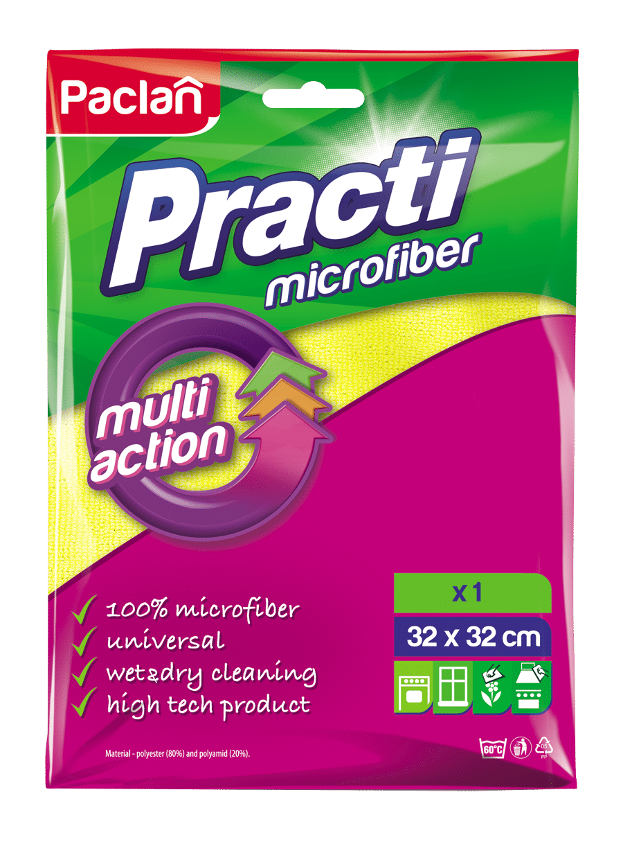 Uniwersalna ściereczka z mikrofibry Practi marki Paclan to niezastąpiony element przy sprzątaniu bez użycia detergentów. Świetnie sprawdzi się podczas mycia okien, wycierania ekranów i monitorów z kurzu, przecierania liści domowych roślin. Produkt można użyć zarówno do sprzątania na sucho, jak i na mokro.