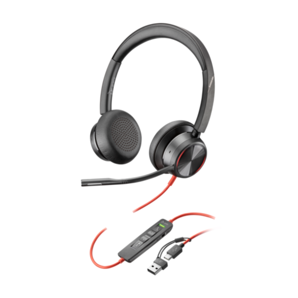 POLY Blackwire 8225 Słuchawki przewodowe stereo na USB-C + adapter USB-C na USB-A