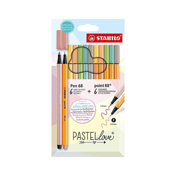 STABILO Pen 68 + Point 88 Zestaw pastelowych cienkopisów i flamastrów 6 kolorów 12 sztuk
