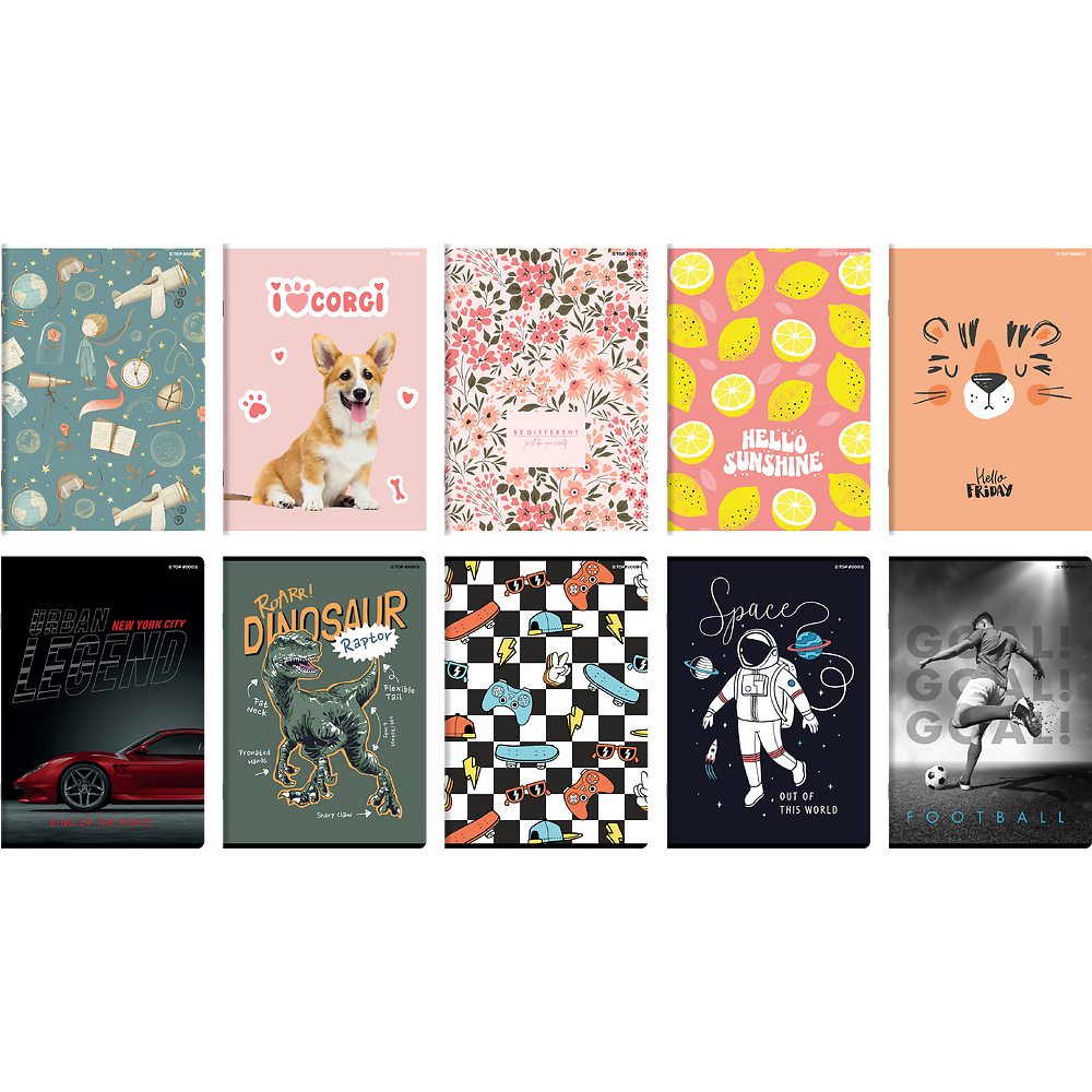 Kolekcja Top 2000 została stworzona po to, aby zapewnić klientowi największy wybór różnorodnych okładek w atrakcyjnej cenie. Same podstawowe formaty i liniatury, uniwersalne grafiki trafiające w obecne trendy oraz style, które bez trudu wybierze uczennica i uczeń każdej klasy. Zastosowany papier jest nieco cieńszy niż w pozostałych produktach marki Top 2000, jednak produkty nie tracą przez to na jakości. Stają się lżejsze, poręczniejsze i odpowiadają preferencjom innych grup użytkowników. Kolekcja Basic to najlepszy wybór dla każdego, kto ceni sobie jakość, styl, funkcjonalność i jednocześnie poszukuje produktu na niższym poziomie cenowym.