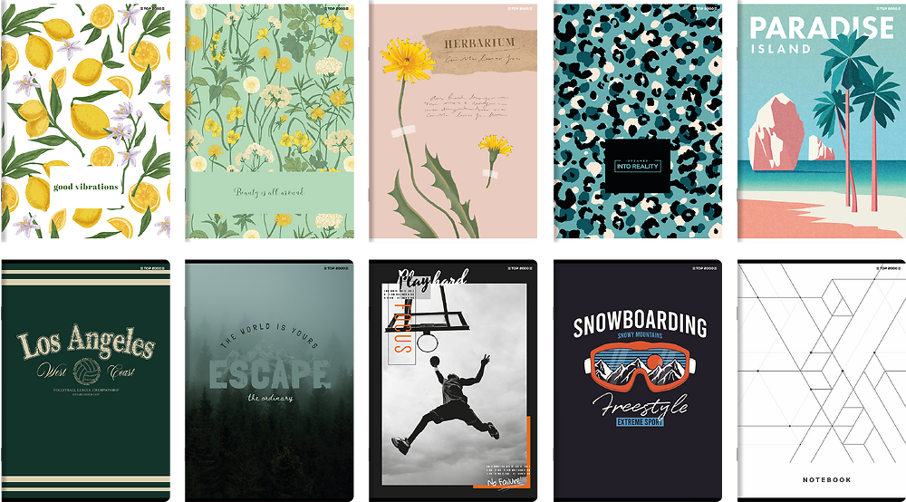 Kolekcja Top 2000 została stworzona po to, aby zapewnić klientowi największy wybór różnorodnych okładek w atrakcyjnej cenie. Same podstawowe formaty i liniatury, uniwersalne grafiki trafiające w obecne trendy oraz style, które bez trudu wybierze uczennica i uczeń każdej klasy. Zastosowany papier jest nieco cieńszy niż w pozostałych produktach marki Top 2000, jednak produkty nie tracą przez to na jakości. Stają się lżejsze, poręczniejsze i odpowiadają preferencjom innych grup użytkowników. Kolekcja Basic to najlepszy wybór dla każdego, kto ceni sobie jakość, styl, funkcjonalność i jednocześnie poszukuje produktu na niższym poziomie cenowym.