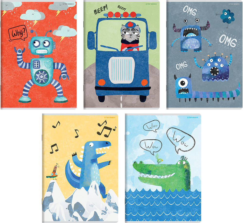 Zeszyty Boy’s Card są pełne zabawnych i ekscytujących ilustracji, które przeniosą każdego ucznia w świat fantazji. Odkryj górskie przygody, krainę potworków, morskie fale i inne niesamowite miejsca, dzięki którym nauka i notowanie stanie się przyjemnością. Zabawne ilustracje na okładkach nie tylko bawią, ale także inspirują. Młody odkrywca może pochwycić ołówek i kontynuować przygody, tworząc własne historie i ilustracje. Okładki wykończone są matową folią, co nadaje zeszytom eleganckiego wyrazu.