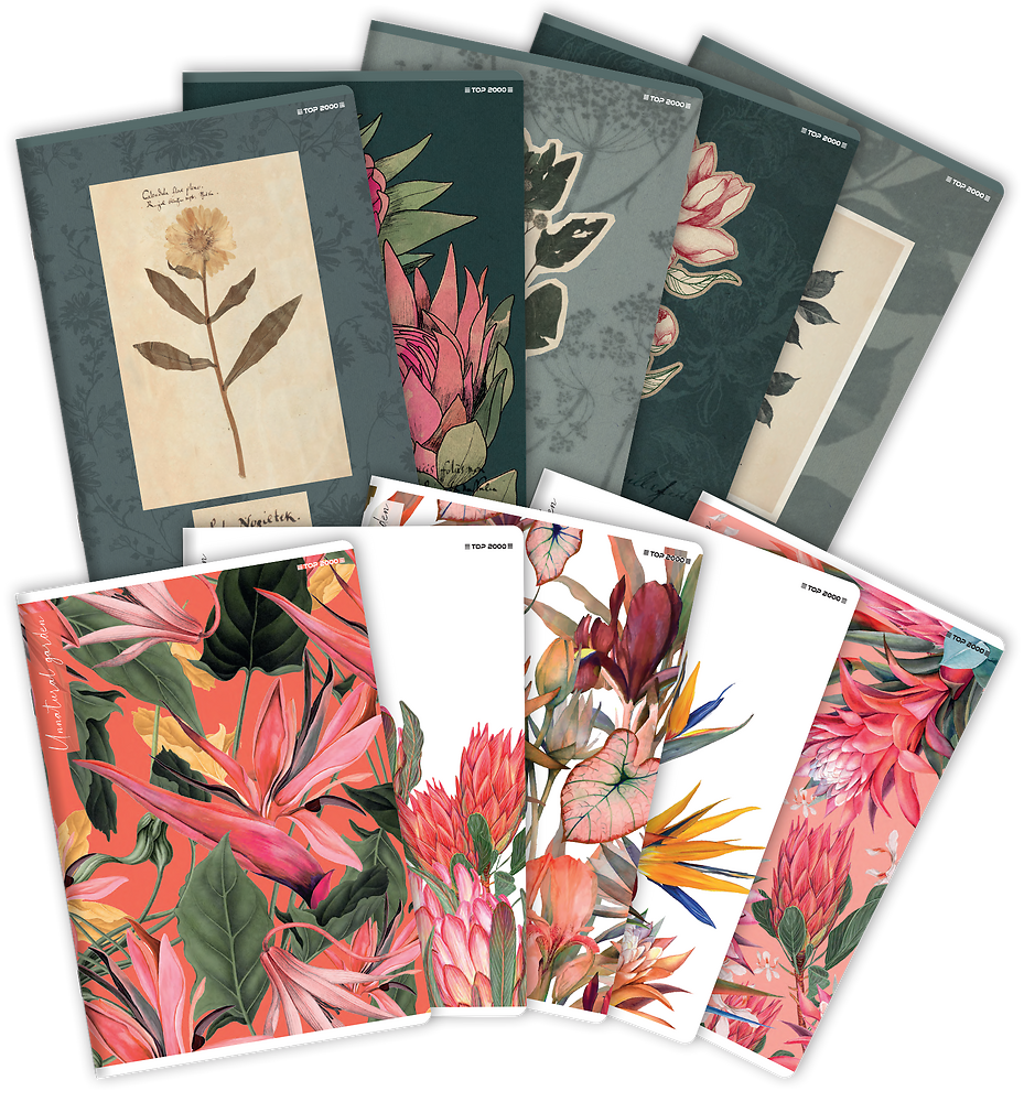 Kolekcja zeszytów inspirowana botaniką w egzotycznym i tradycyjnym wydaniu – łączy w sobie 2 zupełnie różne style ilustracji. 5 okładek przedstawia stonowane kolorystycznie ryciny, jakby wyjęte ze starego klasera. Kolejne 5 to egzotyczne kwiaty w intensywnych kolorach na białym lub koralowym tle. Wszystkie ilustracje zostały indywidualnie zaprojektowane, dzięki czemu są niepowtarzalne i jedyne w swoim rodzaju. Znajdź swoją ulubioną okładkę z kolekcji Flowers i wyróżnij się w klasie!